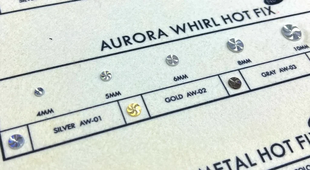 金属素材ならではのシャープな質感に加え、角度によってオーロラの色変化が楽しめる、存在感のある装飾パーツです。