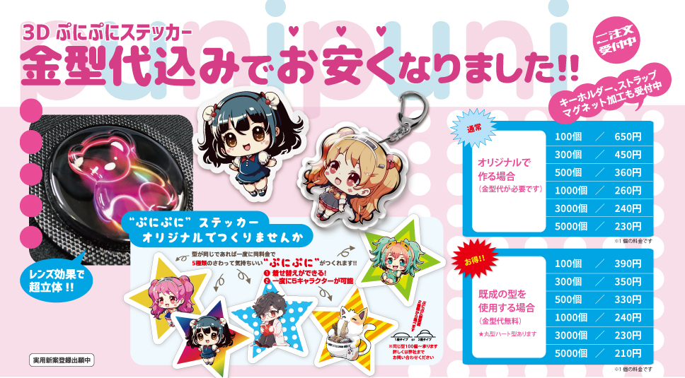 オリジナルのシール、ステッカー、キーホルダーのグッズ制作に、ぜひご覧ください。