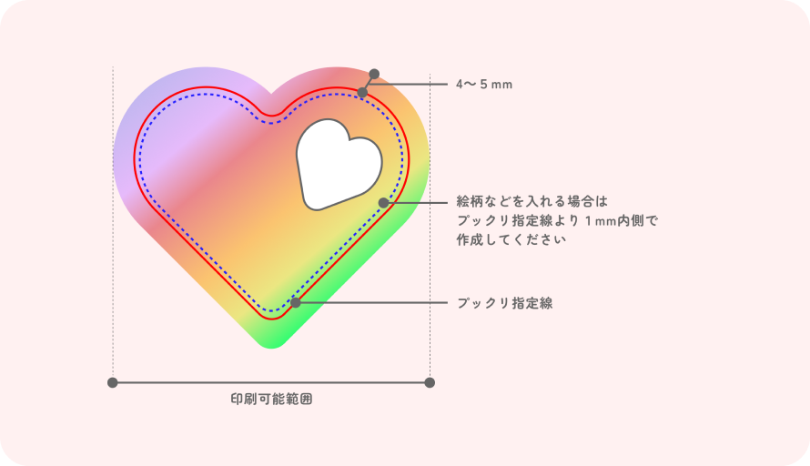 また、印刷データには背景の絵柄のほか、プックリの指定線を含めてご入稿してください。