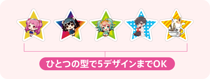 なお、1つのイラストあたりの注文数がが100個以上の場合、同じ型を使って最大5つまでの異なるイラストで量産することも可能です。