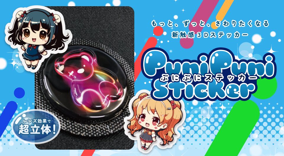 ぷにぷにステッカーは、柔らかい透明素材を使用したステッカーです。