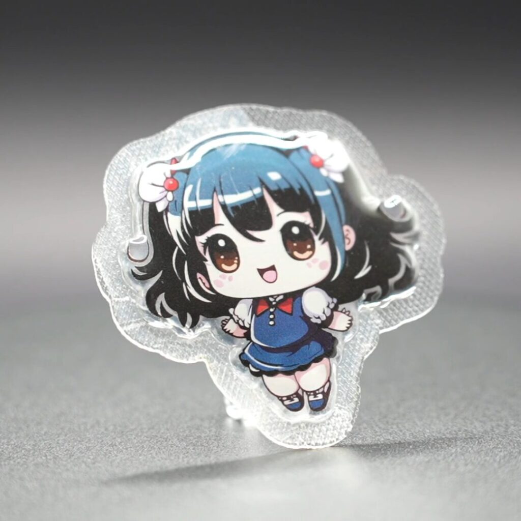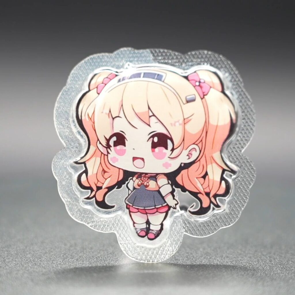 表面が曲面のため、デザインの印象が柔らかく、デフォルメされたキャラクターイラストなどと特に相性が良く、魅力を一層引き立てます。