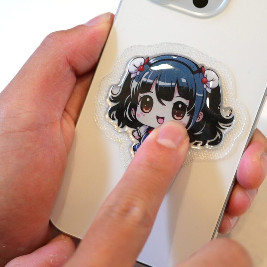 グミのような触り心地で、触っているとすこし心が和むだけでなく、ステッカーとして貼り付けたときに周りの素材などを痛めることもありません。